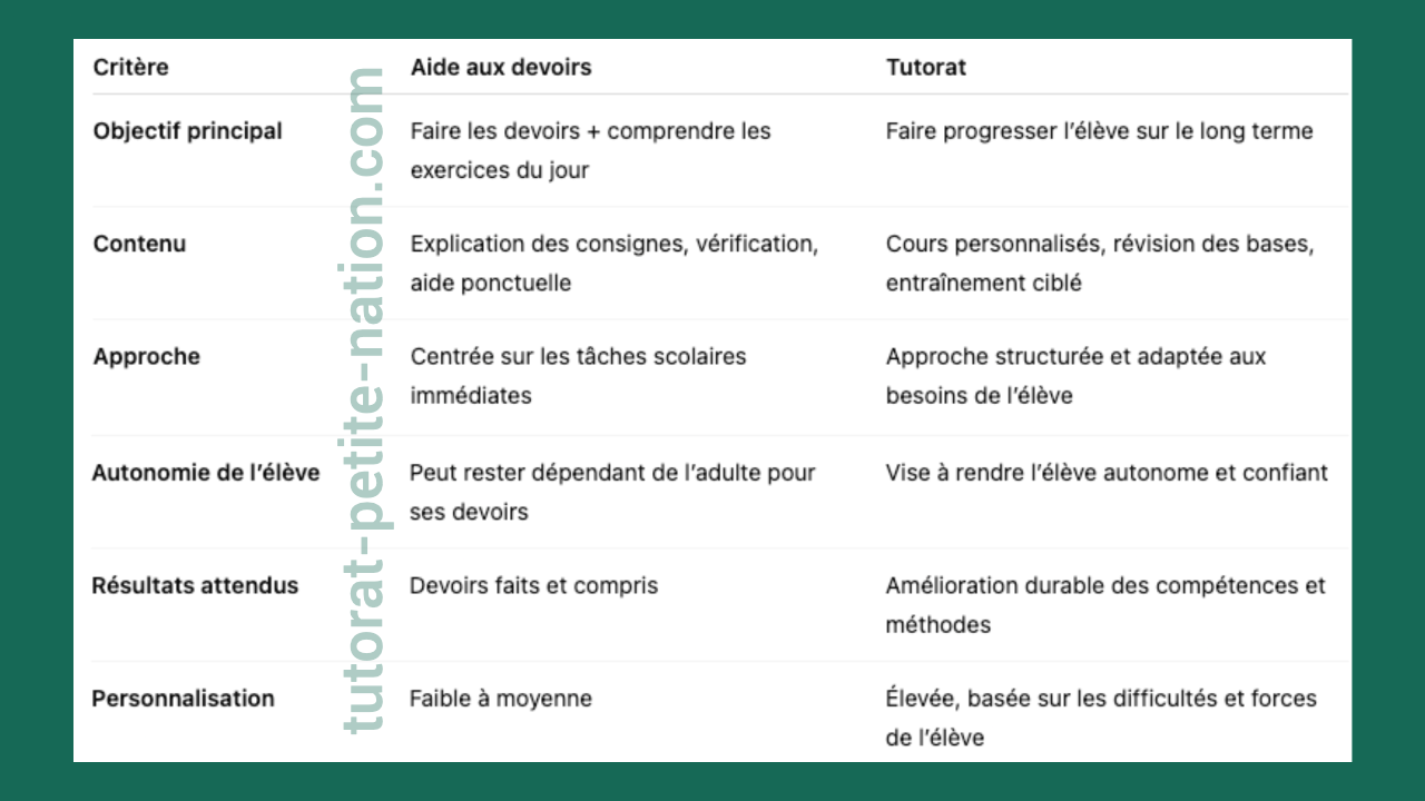 l’élève a ses devoirs faits et comprend mieux ce qu’il devait réaliser, mais sans forcément travailler en profondeur sur ses difficultés.
